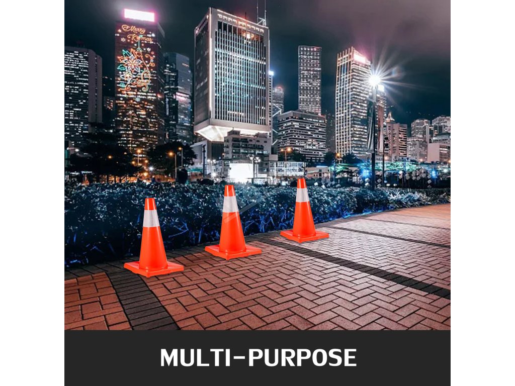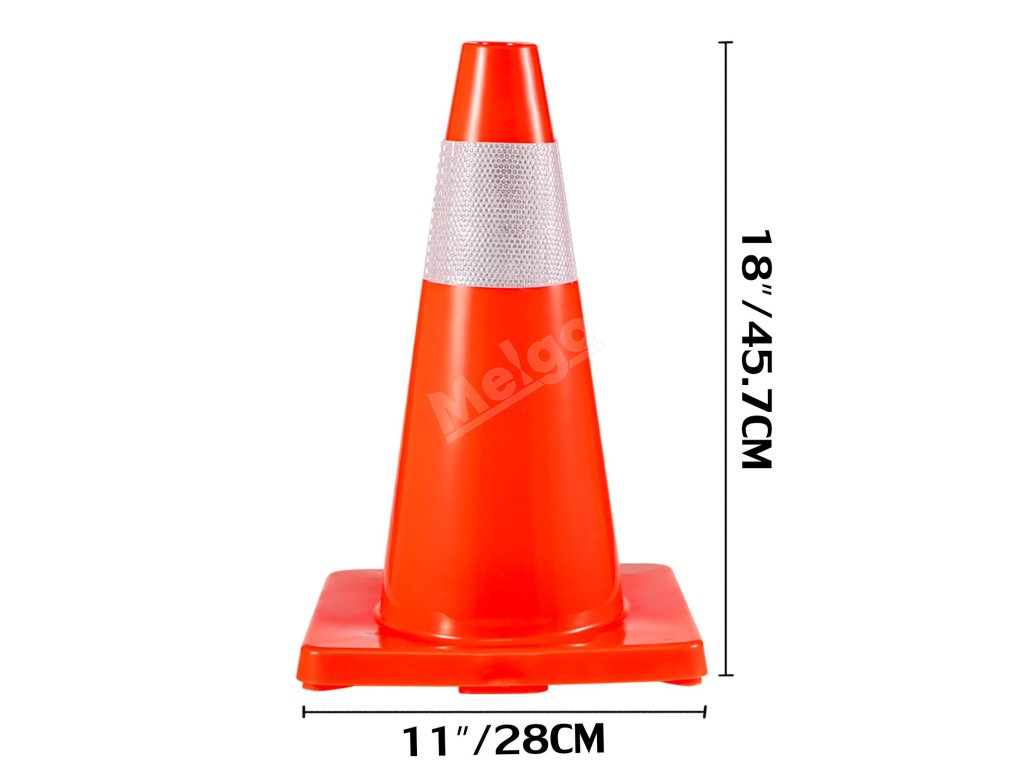 Díky oslnivé červené barvě a jednomu reflexnímu pruhu jsou naše dopravní kužely velmi nápadné a viditelné ve dne i v noci. dokonalá výška 18" zvyšuje viditelnost.