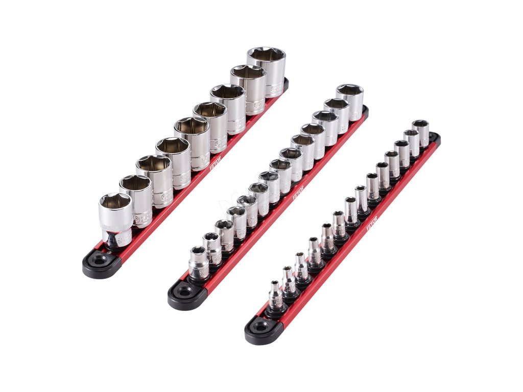 Sada držáků nástrčných hlavic 3 ks 1/4'',3/8'',1/2'' hliník 40 ks