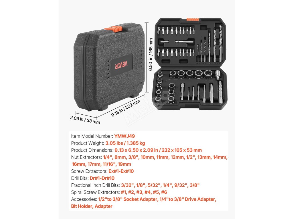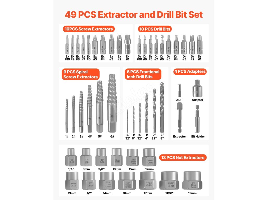 Sada extraktorů šroubů a vrtáků, 49 dílů, cr-mo ocel, kufřík