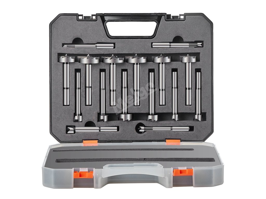 Sada forstnerových vrtáků 16 ks 6.4–41.3 mm uhlíková ocel do dřeva