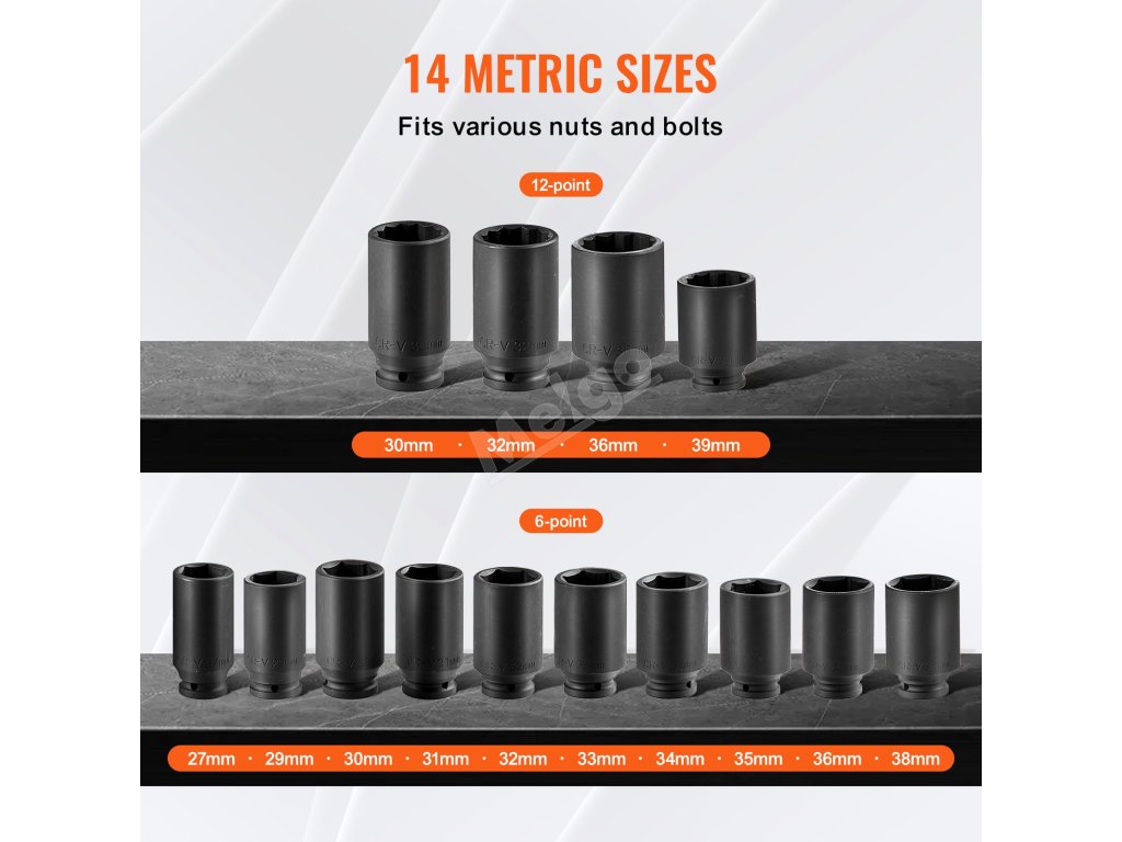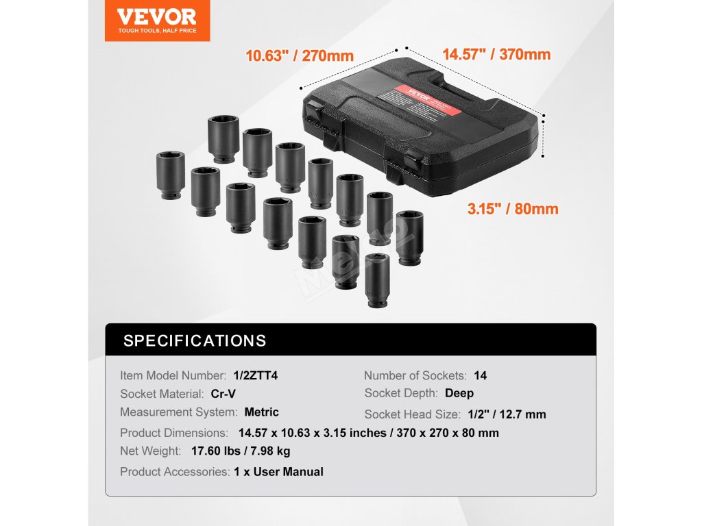 Sada nástrčných hlavic VEVOR 1/2" 6+12 bodů 14dílná