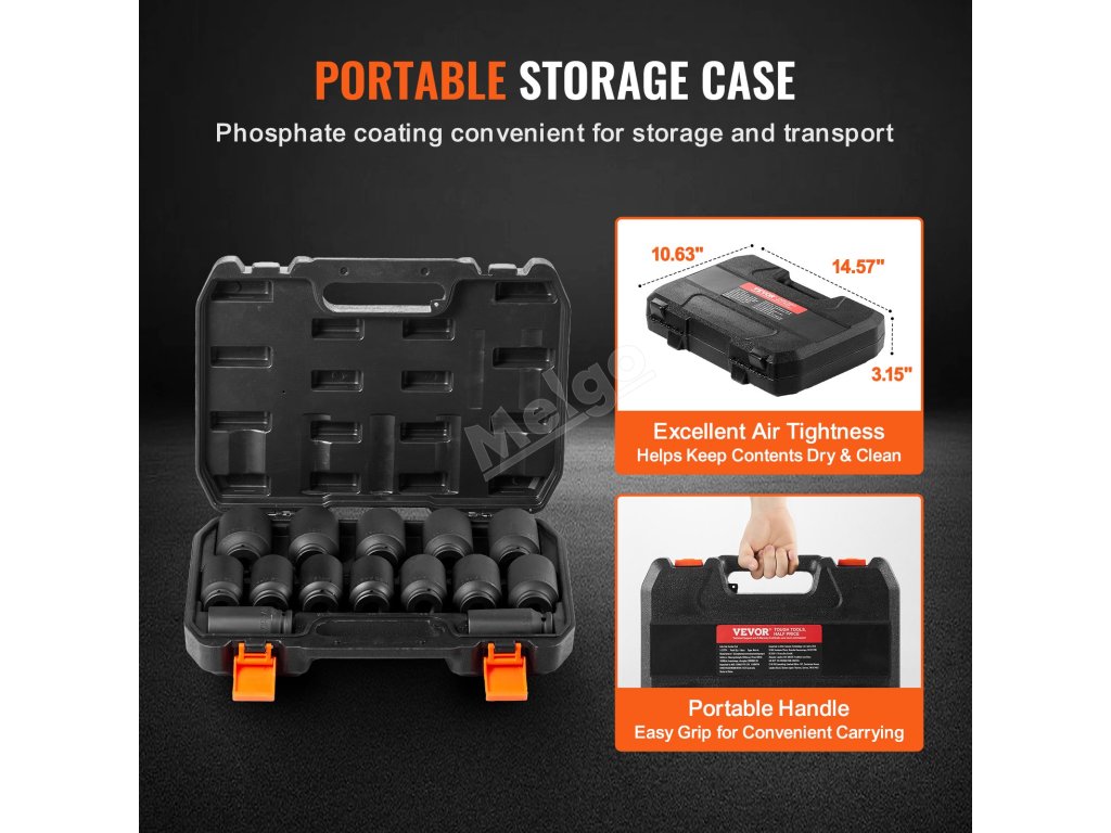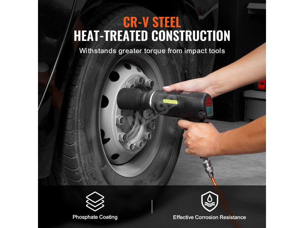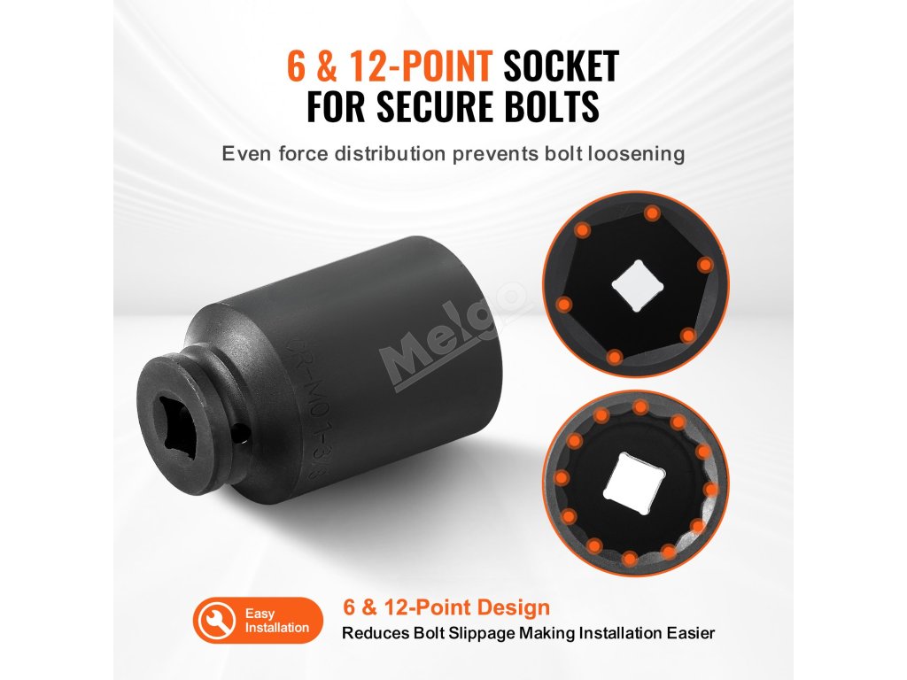 Sada nástrčných hlavic na nápravy je vyrobena z vysoce pevné oceli CR-V odolné proti korozi a má dlouhou životnost. Vysoce kontrastní značení velikostí umožňuje rychlou identifikaci, zatímco konstrukce s 6+12 hroty bezpečně drží matice, aby nedošlo k jejich vyklouznutí nebo poškození.