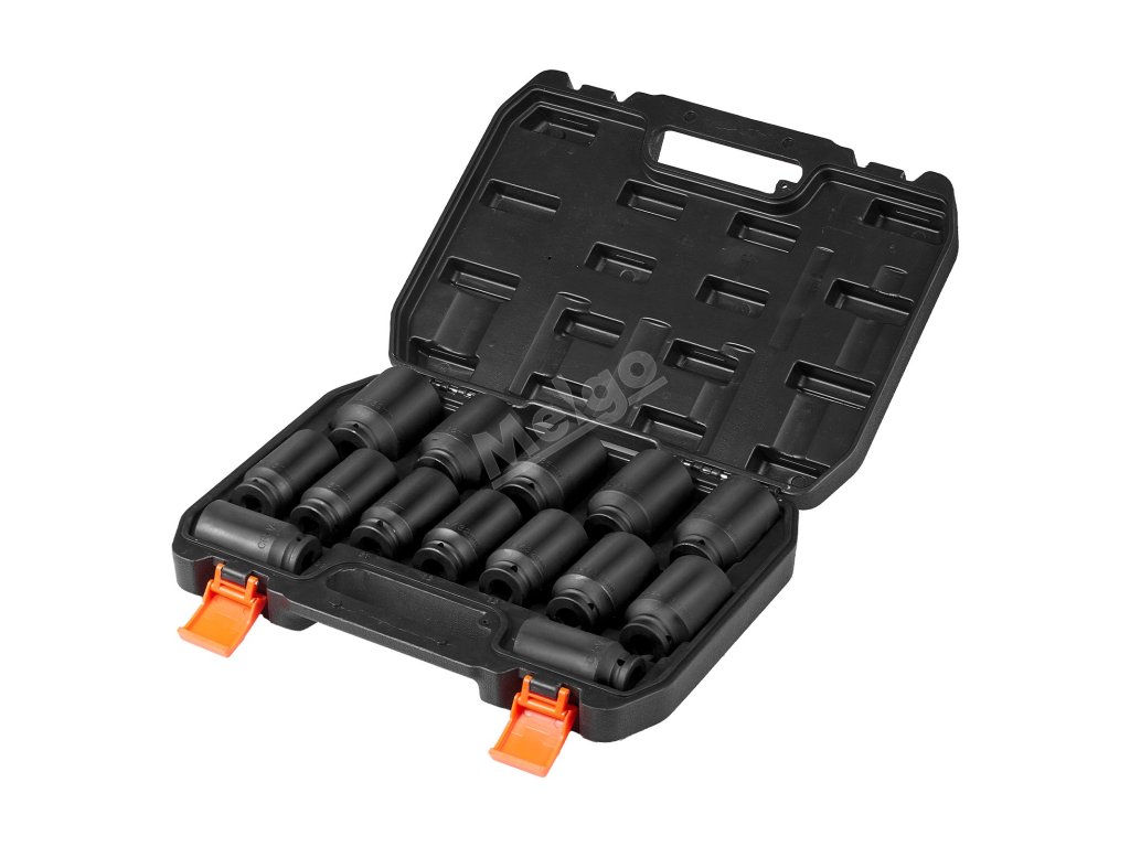Sada hlavic na matice nápravy 14-dílná 1/2" 6+12-bodové metrické