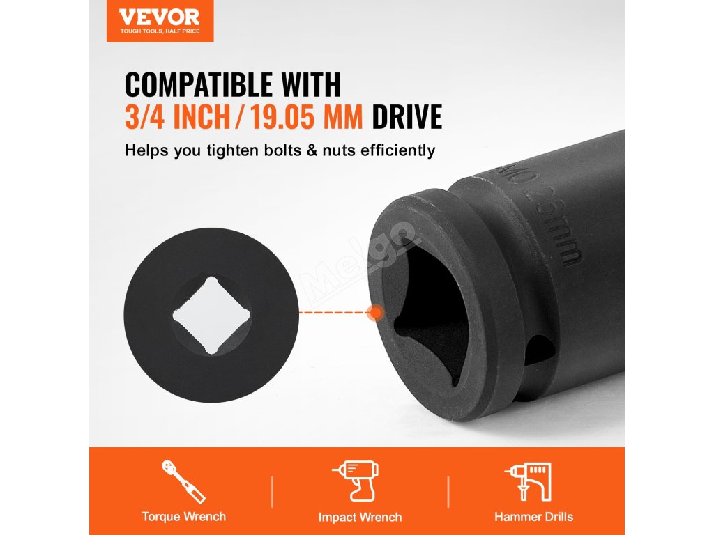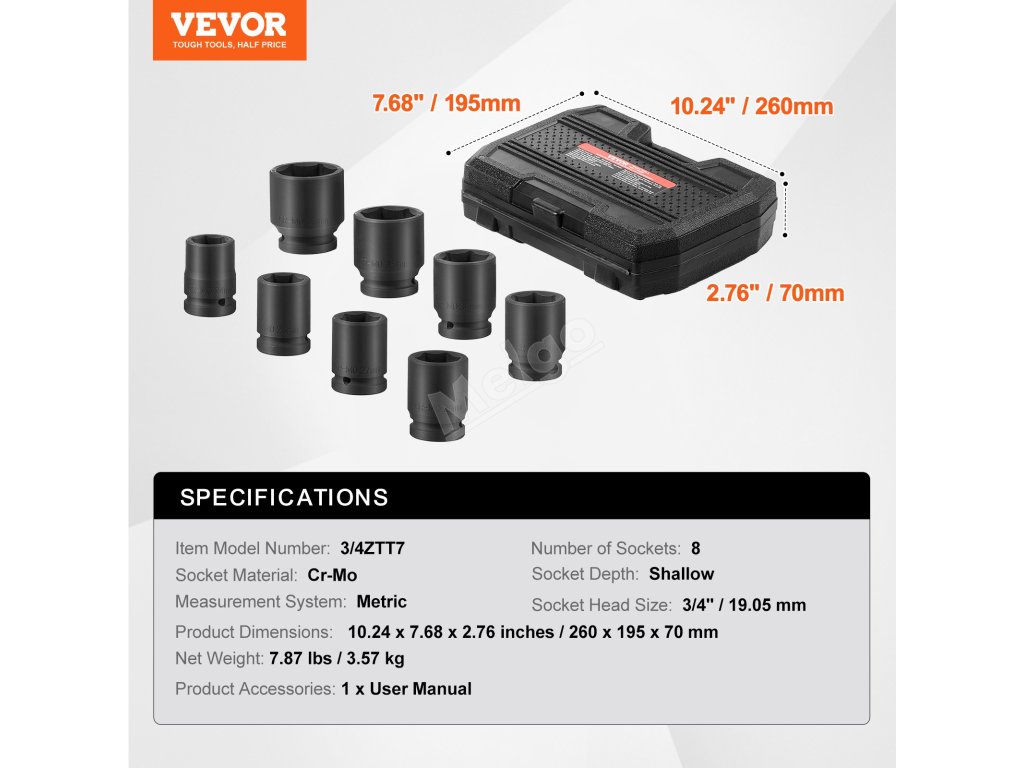 VEVOR Sada nástrčných hlavic 3/4" s 6bodovým pohonem 8 kusů