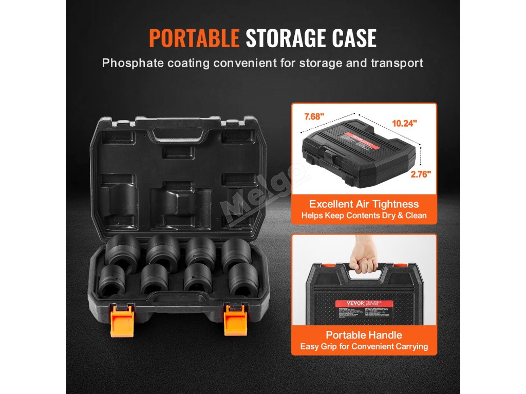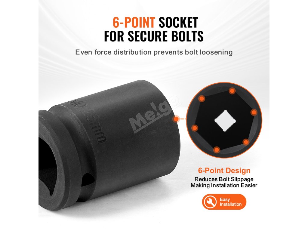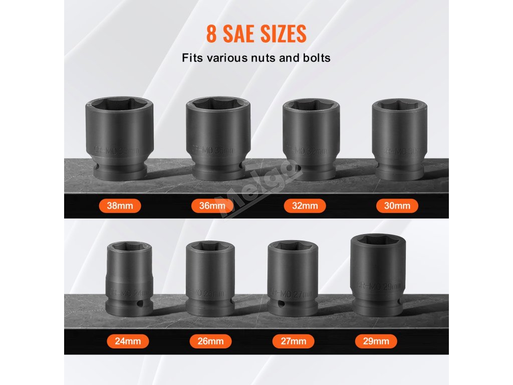 Sada nástrčných hlavic na matice náprav je vyrobena z vysoce pevné oceli CR-MO odolné proti korozi a má dlouhou životnost. Vysoce kontrastní značení velikostí umožňuje rychlou identifikaci, zatímco šestihrotá konstrukce bezpečně drží matice, aby nedošlo k jejich vyklouznutí nebo poškození.