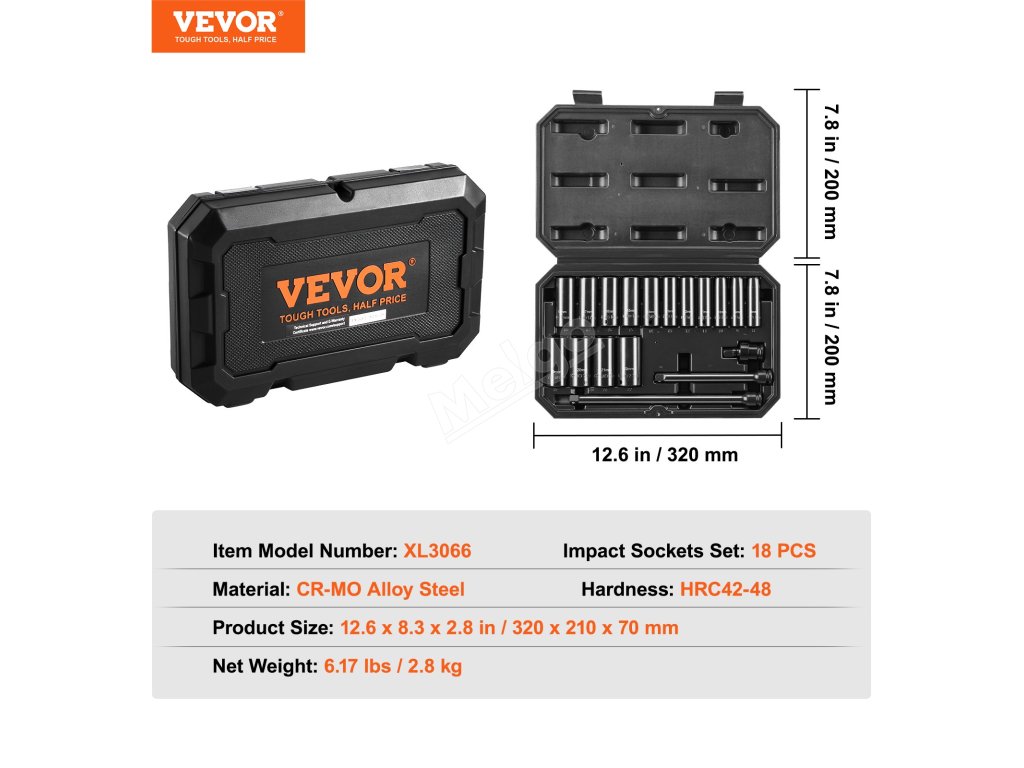 Hledáte profesionální a přenosnou sadu rázových nástrčných hlavic? 18dílná sada rázových nástrčných hlavic VEVOR nabízí kompletní sortiment nářadí, které je vhodné zejména pro opravy automobilů různých značek.