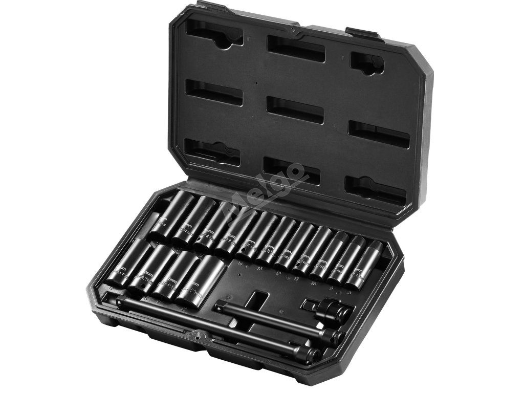 Sada hlubokých nástrčných hlavic 3/8" 18 dílů, 8–22 mm, 6-hran cr-v