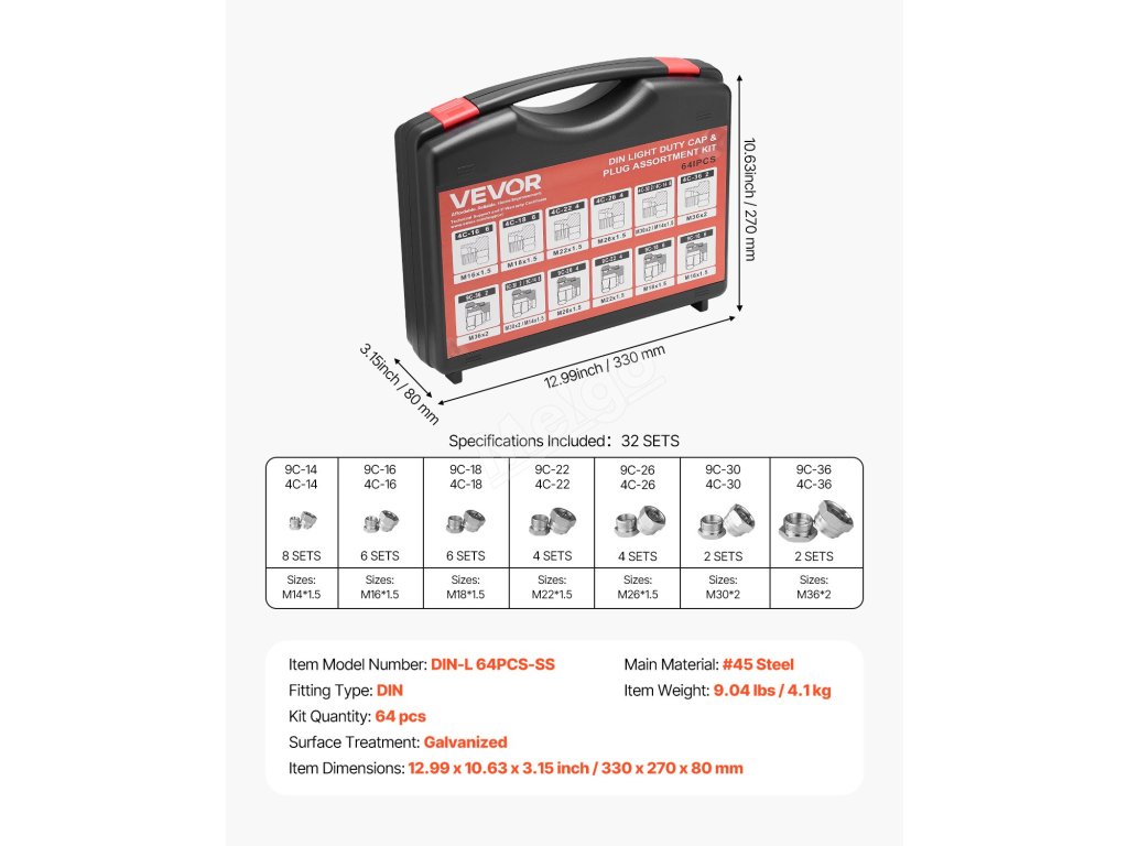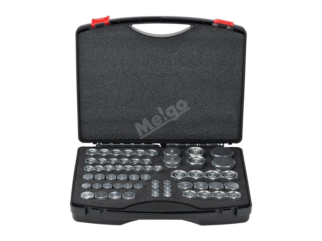 Tato sada nabízí širokou škálu velikostí, vysoce přesné závity a těsnění odolná proti úniku. Jsou vyrobeny z odolné pozinkované oceli č. 45 a jsou odolné proti korozi. Díky dělenému úložnému prostoru a označené stupnici jsou přenosné a ideální pro použití v průmyslu, zemědělství a strojírenských dílnách.