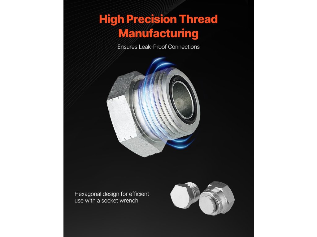 Tyto uzávěry a zátky hydraulických hadic jsou vyrobeny s přesnými závity s jemnou tolerancí, které zajišťují rovnoměrné, hladké závity a bezpečné spoje, které zabraňují prokluzování. To účinně zabraňuje únikům a zajišťuje bezpečné hydraulické spojení bez netěsností.
