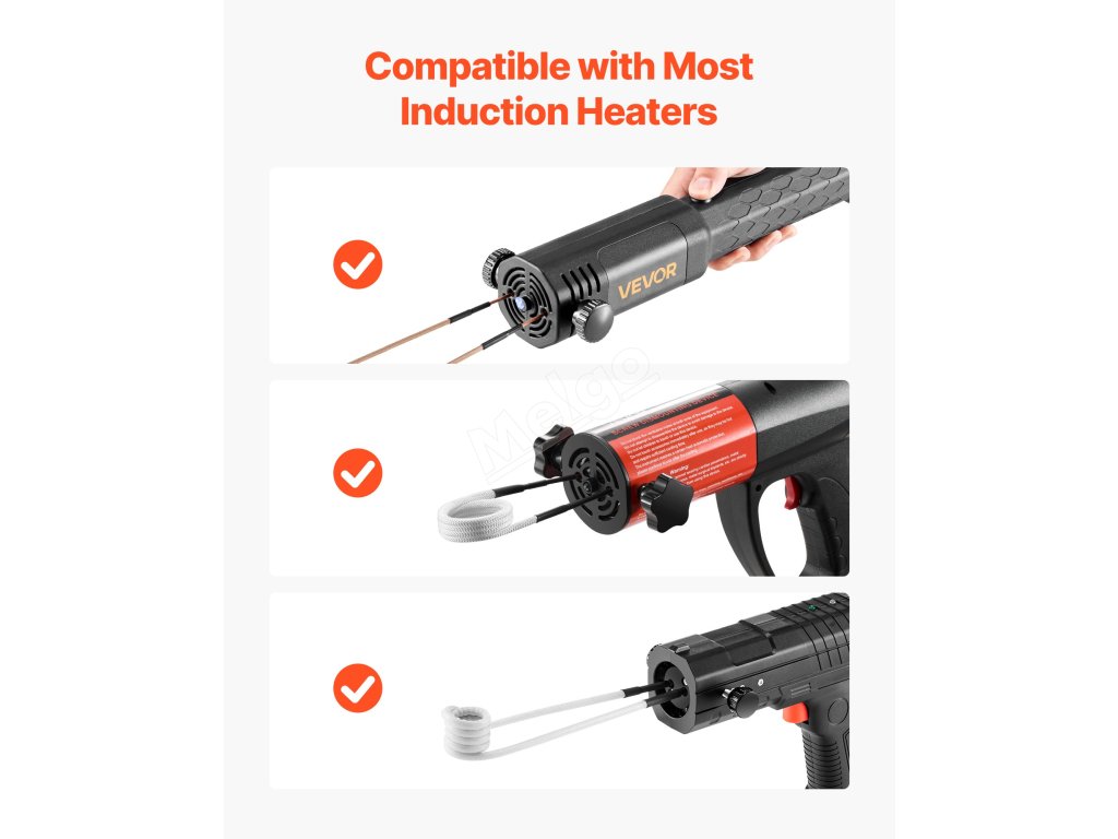 Tato topná spirála je kompatibilní s běžnými indukčními topnými hlavami. Více cívek zvládne šrouby různých velikostí a nepravidelné obrobky. Ať už se jedná o malé šrouby nebo větší ložiska, poskytuje přesný ohřev.