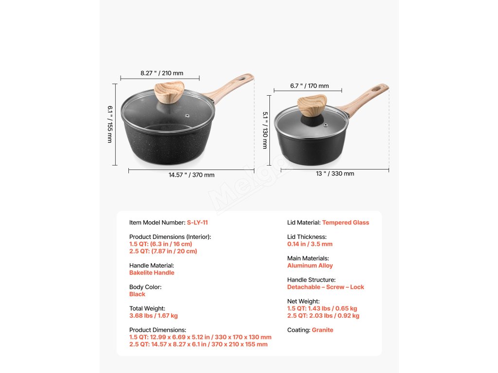 | Rozměry výrobku (vnitřní) | 1.5 QT (6,3 palce/16 cm) |