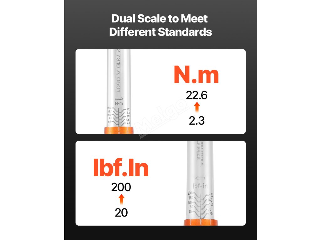 Obousměrný momentový klíč je vybaven laserem gravírovanými stupnicemi pro jasné a přesné odečty i za zhoršených světelných podmínek. Konstrukce se dvěma stupnicemi rozšiřuje univerzálnost klíče, takže je vhodný pro širší škálu úkolů.