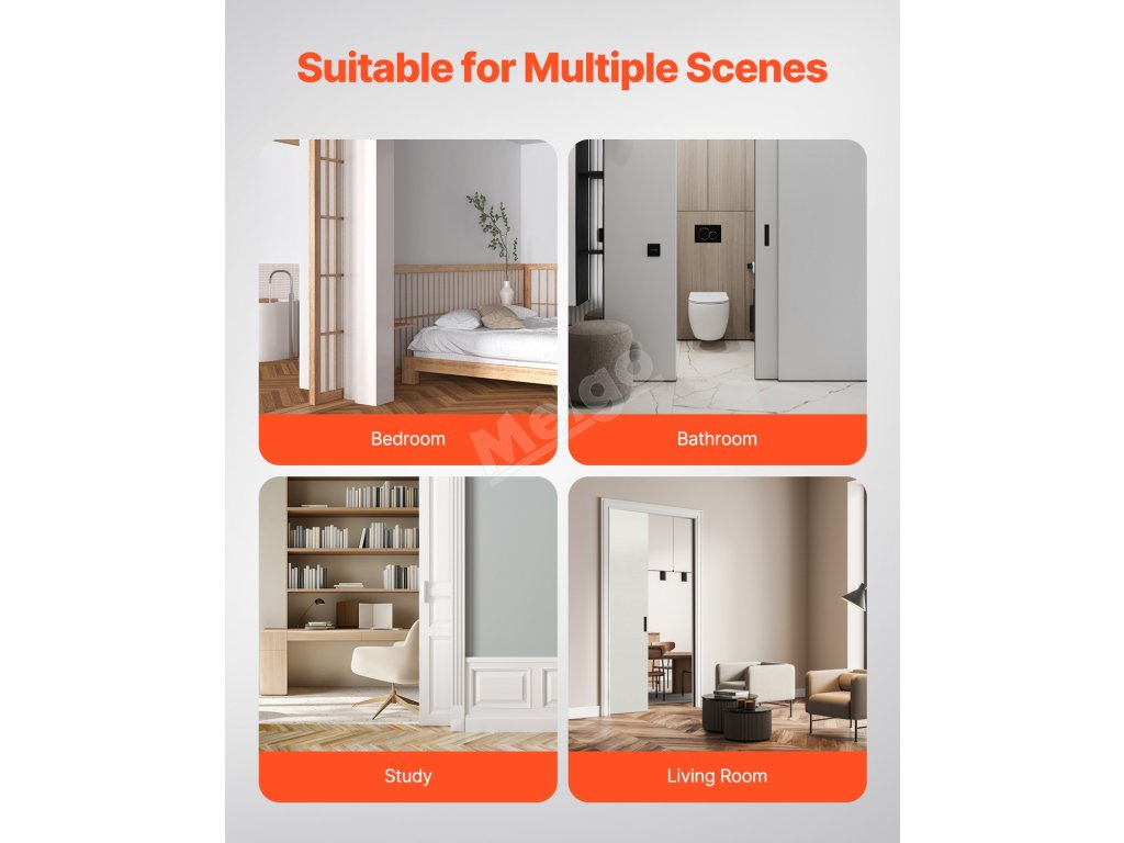 Tato sada kolejnic pro kapesní dveře složená z vysoce kvalitních hliníkových kolejnic a tříkolového kladkového systému zajišťuje hladké a stabilní posouvání. Je vhodná do různých interiérů, jako jsou obývací pokoje, kuchyně, ložnice a koupelny.
