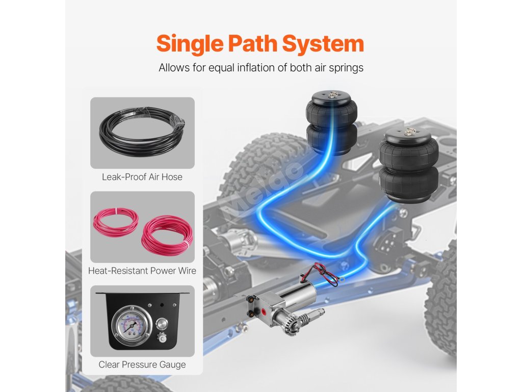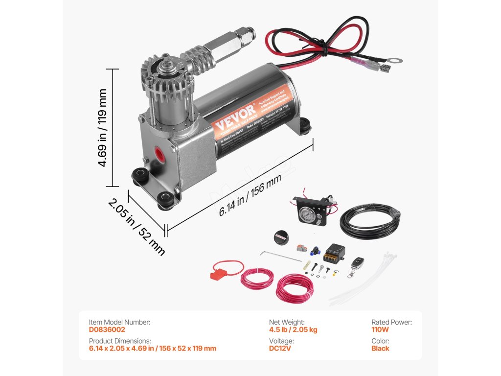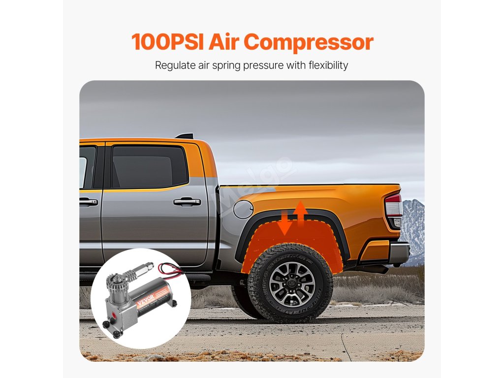 Tato sada vzduchového odpružení s kompresorem obsahuje vzduchový kompresor o tlaku 100 psi pro rychlejší nafouknutí. Je kompatibilní s většinou systémů vzduchového odpružení, takže je vhodná pro širokou škálu typů a značek vozidel a zajišťuje efektivní provoz pro všechny vaše potřeby vzduchového odpružení.