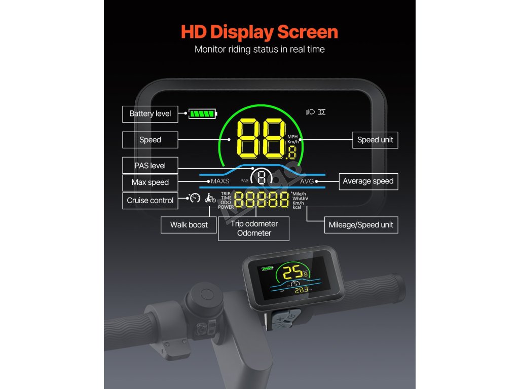 Zažijte maximální vzrušení díky rychlosti 37,3 MPH v nenaloženém stavu a úhlu stoupání 0°-12°! Pociťte radost z rychlé jízdy, díky které bude každá cesta nezapomenutelná. (Tato maximální rychlost je založena na podmínkách bez zatížení - skutečná rychlost se může lišit v závislosti na zatížení, stavu vozovky a hmotnosti jezdce)