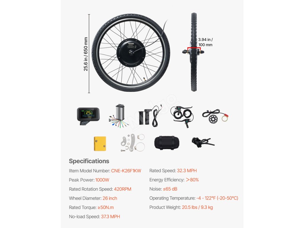 Sada konverze e-biku 1000W 48V 420rpm 26" přední kolo, lcd, pas