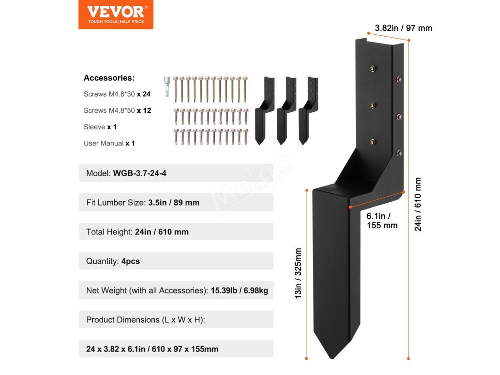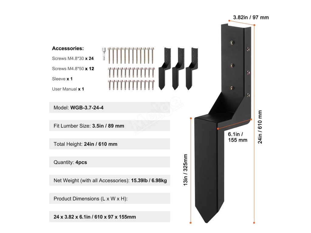 Sada kotev na sloupky plotu 4ks vnitřní Ø 3.5×3.5 inches ocel