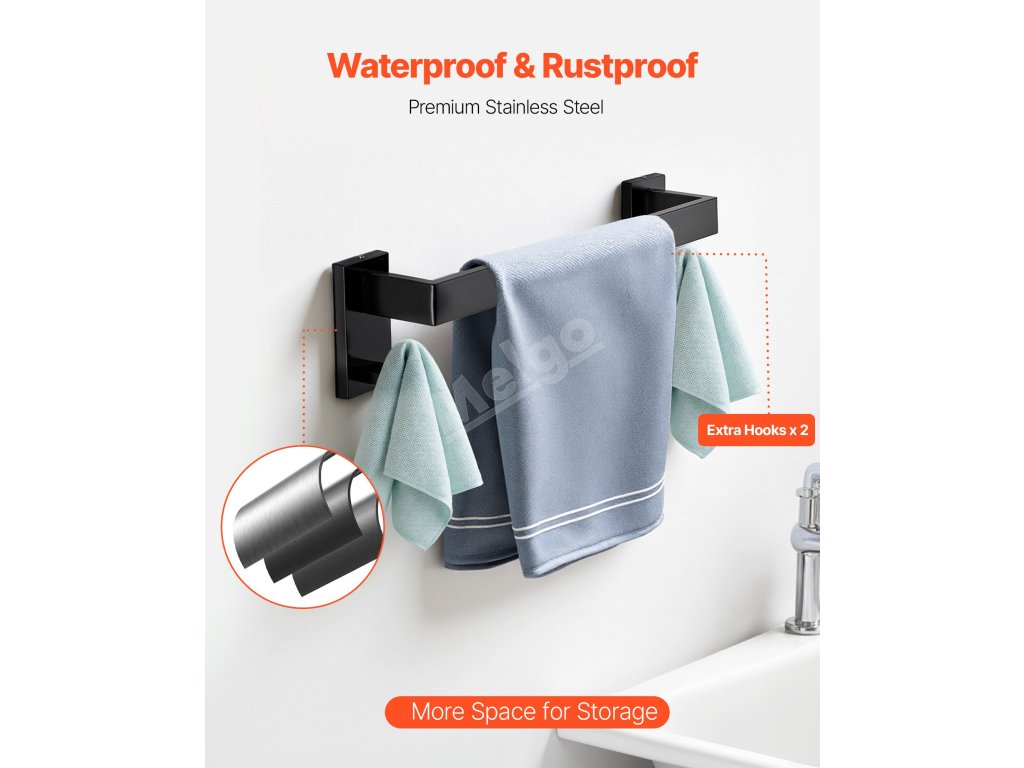 Naše sada držáků na ručníky je vyrobena z vysoce kvalitní nerezové oceli, která je odolná proti opotřebení, poškrábání a korozi - ideální do vlhkého prostředí koupelny a odolná.