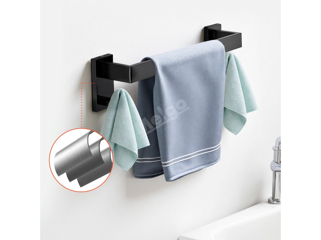 Díky klasickému minimalistickému designu se tato sada držáků na ručníky snadno kombinuje s různými koupelnovými dekoracemi a přináší nadčasovou eleganci.