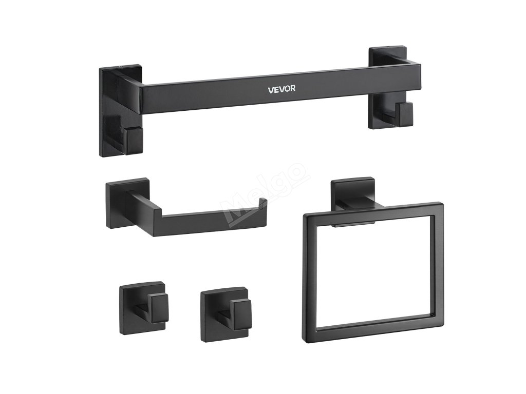 Sada koupelnových doplňků 5 dílů, nerezová matná černá, 16 inch tyč