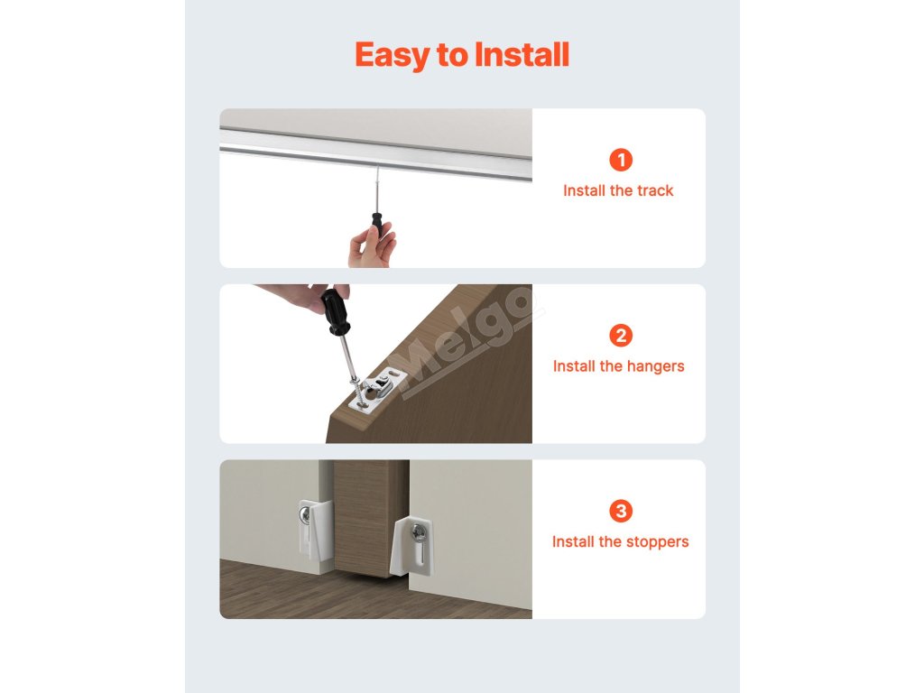 Tato sada kolejnic pro kapesní dveře složená z vysoce kvalitních hliníkových kolejnic a tříkolového kladkového systému zajišťuje hladké a stabilní posouvání. Je vhodná do různých interiérů, jako jsou obývací pokoje, kuchyně, ložnice a koupelny.