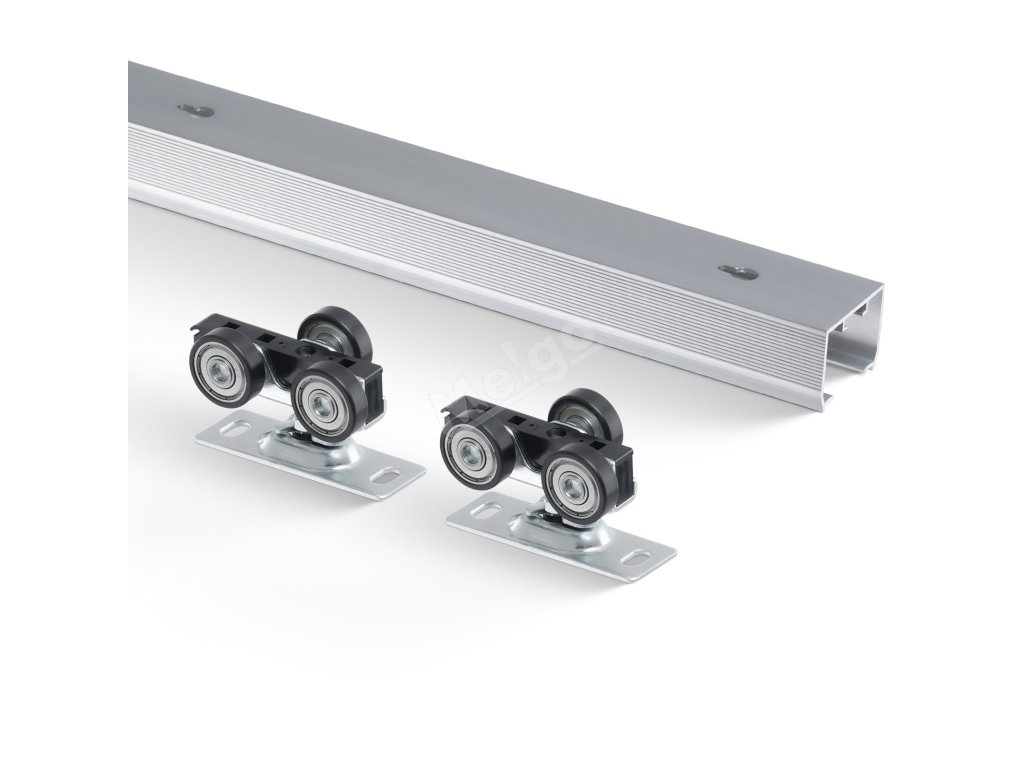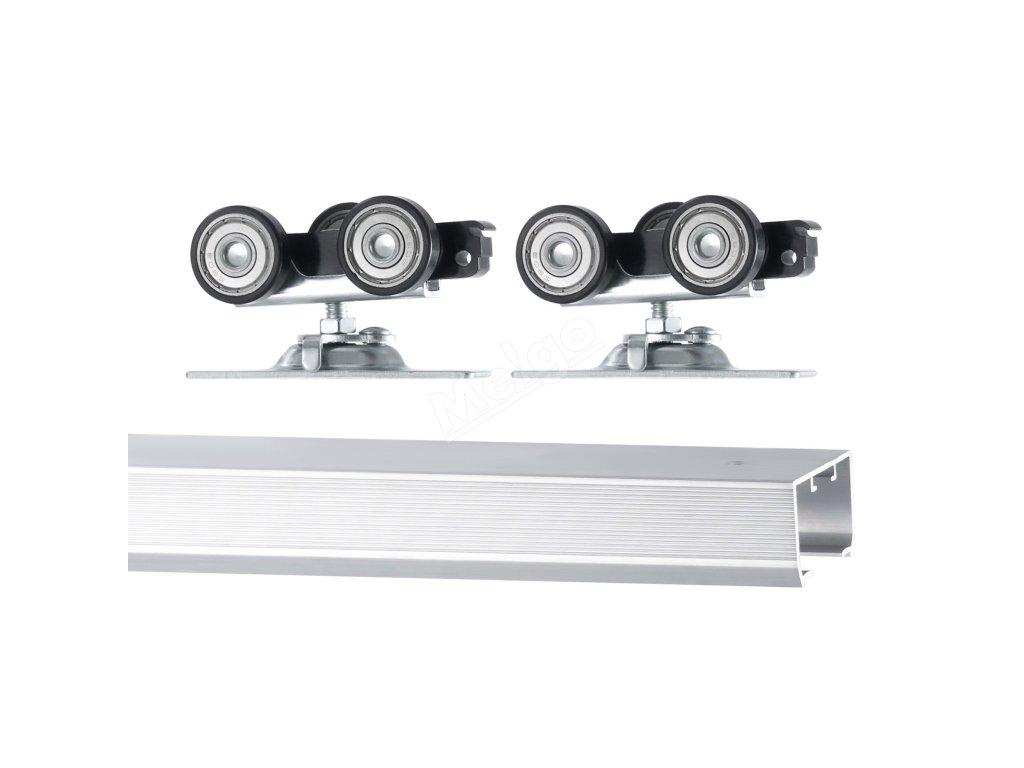 Závěsy této sady kapesních dveří mají tříkolovou konstrukci s těžkými kuličkovými ložisky, která zajišťuje rovnoměrné rozložení hmotnosti. Díky tomu se dveře hladce posouvají, což snižuje hlučnost a zajišťuje stabilní provoz.