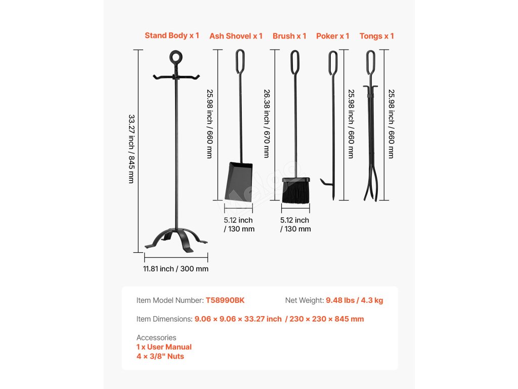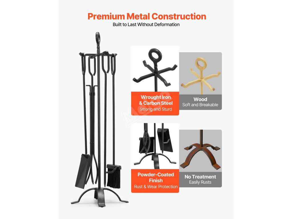 Tato sada krbového nářadí je vyrobena z prvotřídního tepaného železa, uhlíkové oceli a práškového laku a je odolná proti ohybu, korozi a vysokým teplotám, což zajišťuje dlouhou životnost. Ergonomické prodloužené rukojeti poskytují pohodlné uchopení odolné vůči vysokým teplotám, které je nezbytnou pomůckou při používání krbu.