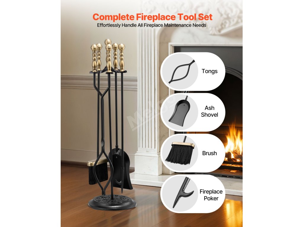 Sada krbového nářadí pokryje všechny potřeby. Kleště bezpečně přikládají palivové dřevo, pohrabáč snadno upravuje hořící polena, aby se zvýšila účinnost spalování, a lopatka na popel a kartáč usnadňují čištění popela. Každé nářadí spolupracuje, aby zjednodušilo údržbu krbu a zlepšilo výkon hoření.