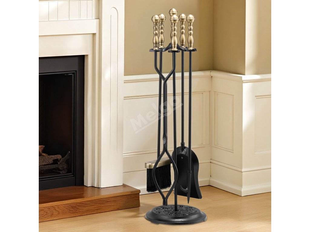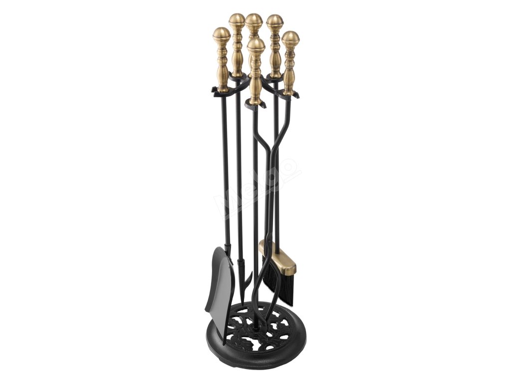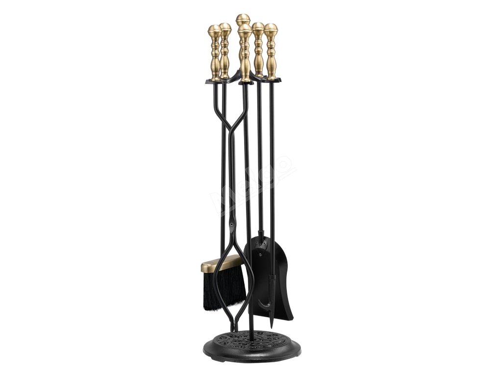 Sada krbových nářadí 5 ks stojan lopatka kleště poker černá/mosaz