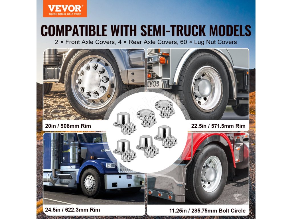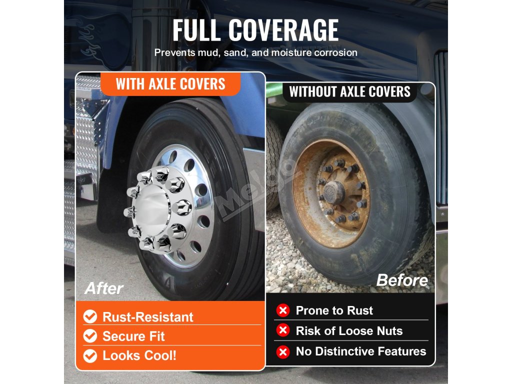 Ať už má váš nákladní vůz 20palcová, 22,5palcová nebo 24,5palcová kola nebo 11,25palcový kruh šroubů, tento kryt nápravy přívěsu dodá vašemu vozu vlastní vzhled a váš vůz na silnici vynikne.