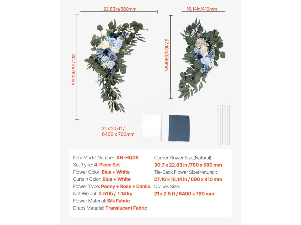 Rozlučte se s šedivostí a přivítejte romantiku! Tato sada umělých svatebních oblouků s květinami obsahuje elegantní průsvitné závěsy a realistické hedvábné květiny, které vytvoří snovou svatební atmosféru. Skvěle se hodí na svatby, večírky a akce v interiéru i exteriéru.