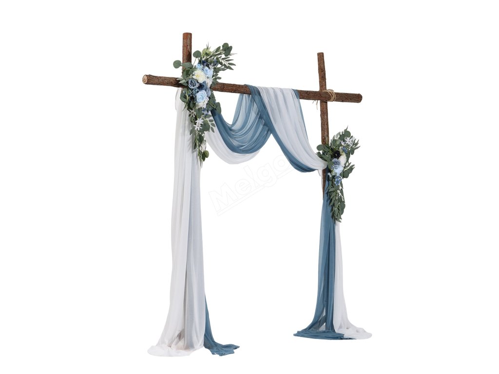 Sada květinové dekorace na oblouk, modrá, 4 ks (2 kytice, 2 závěsy)