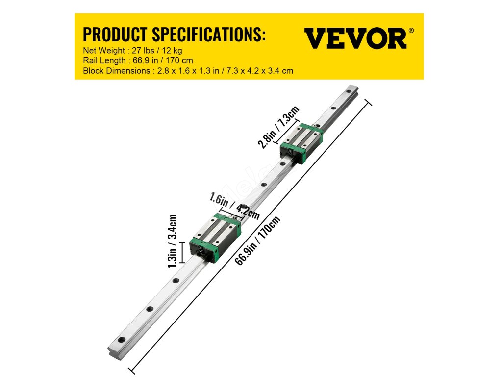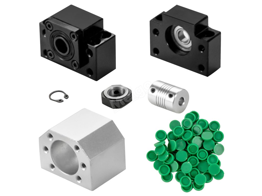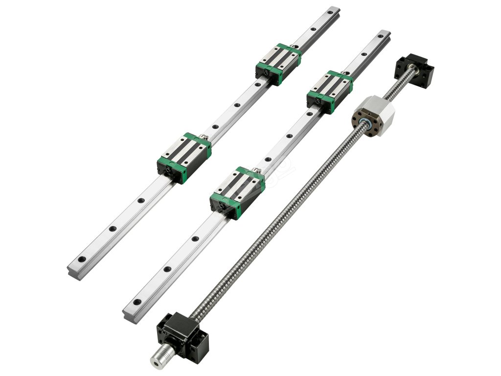 Sada lineárního vedení obsahuje 2 kusy 1700 mm dlouhých kolejnicových hřídelí HGR20, 4 bloky a sadu kuličkových šroubů.