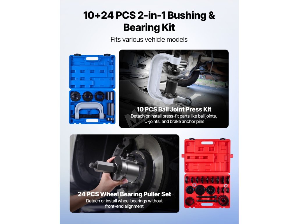 Zahrnuje ucelenou řadu nejčastěji používaných velikostí diskových pouzder. Tato sada ovladačů pouzder umožňuje přesný výběr správného uložení malých ložisek u jízdních kol, motocyklů nebo i automobilů a umožňuje jejich rychlou demontáž.