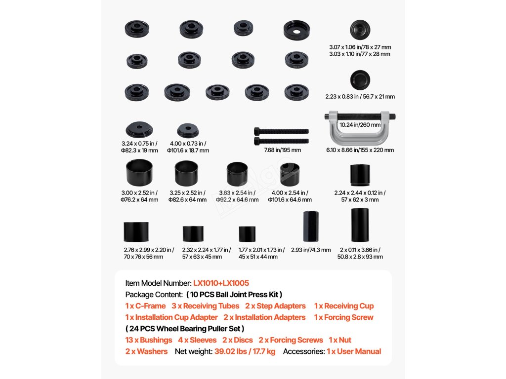 Sada ovladačů ložisek a těsnění obsahuje v balení pouzdra kotoučů různých velikostí a kompletní montážní nástroj. Naše sada pro lisování ložisek umožňuje rychlou a bezpečnou montáž a splnění požadavků na demontáž ložisek.