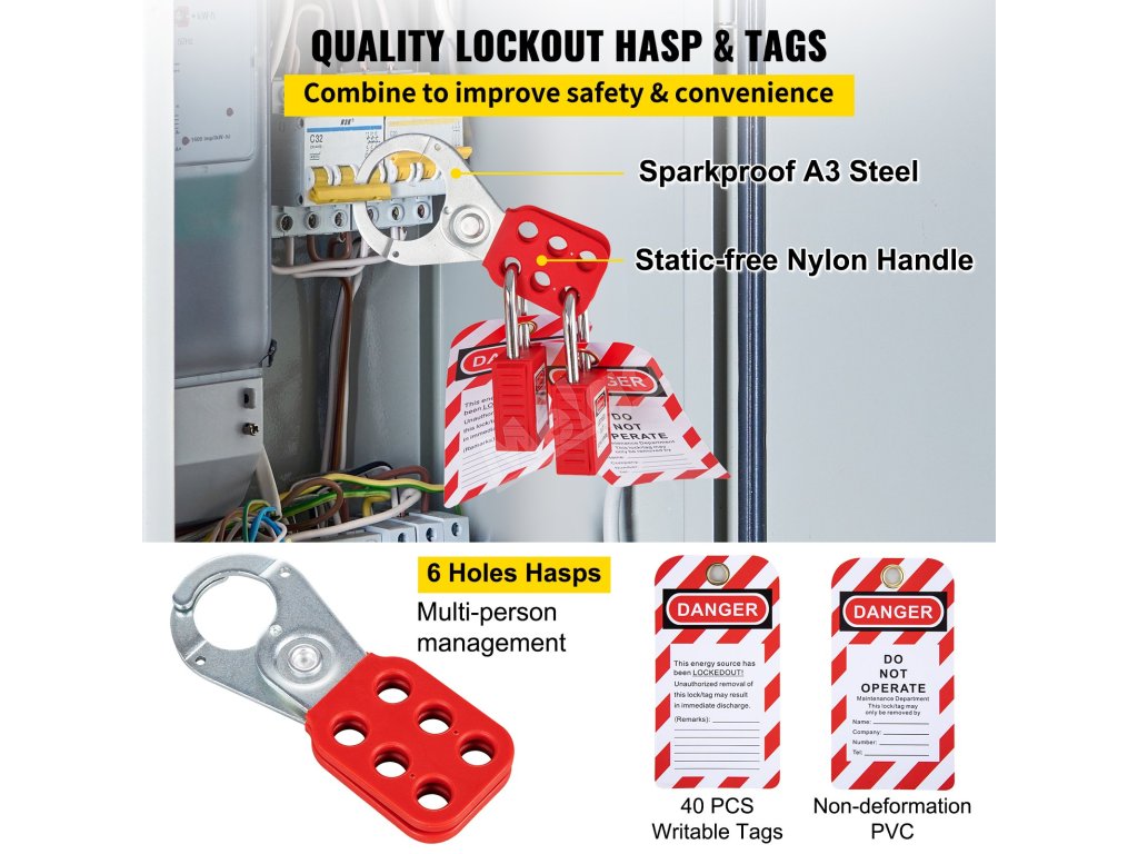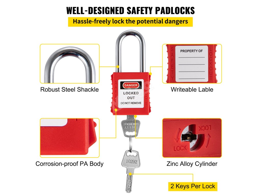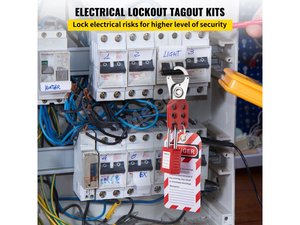 Rozpoznejte nebezpečí a včas mu zabraňte. Sady blokovacího značení VEVOR mohou řešit elektrická nebezpečí pro vyšší úroveň bezpečnosti. Je nepostradatelná pro stroje, elektrická zařízení a průmyslové práce.