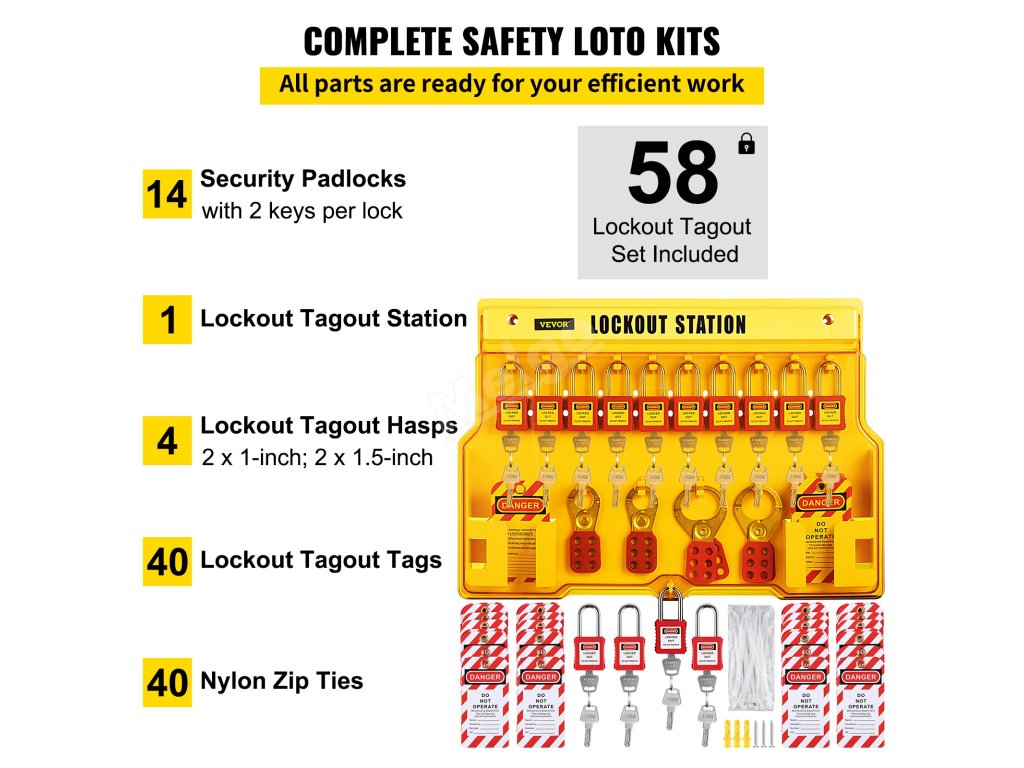 Sada loto 58 dílů se zámky, haspami, štítky a stahovacími pásy