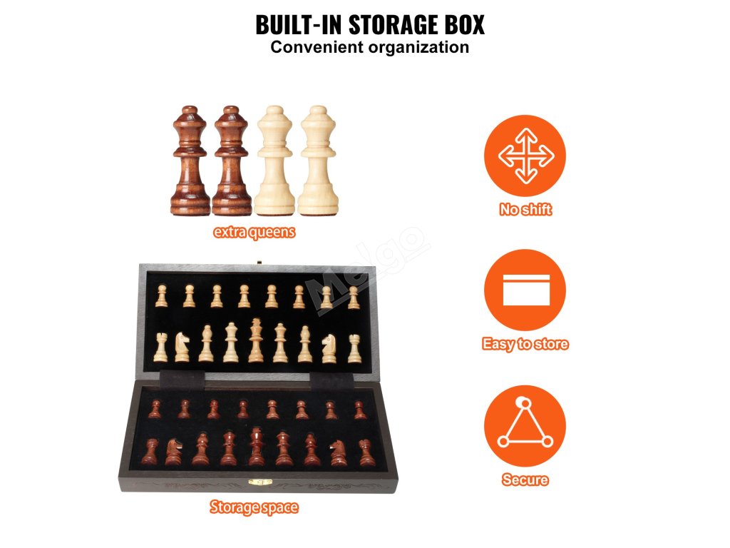 Důmyslně navržený úložný box umožňuje pohodlné uložení a ochranu šachových figurek. Snadno se přenáší a je připraven přinést zábavu kdykoli a kamkoli.