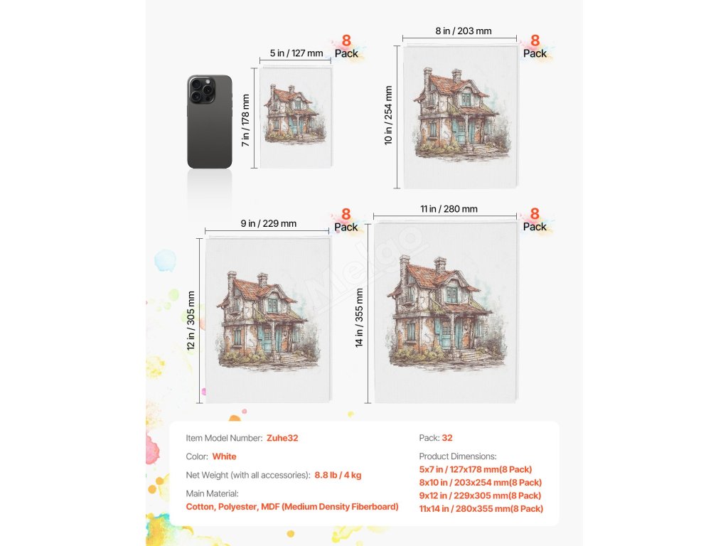 Sada malířských pláten 32 ks 5×7/8×10/9×12/11×14 na akryl a olej