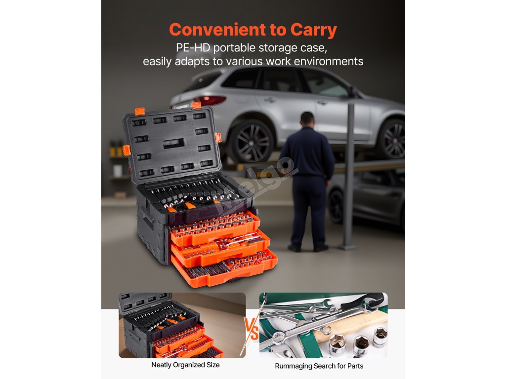 Tato sada mechanického nářadí je zabalena v kompaktním kufříku a obsahuje příslušenství pro různé opravy. Ruční instalace zajišťuje bezproblémovou praktickou montáž.