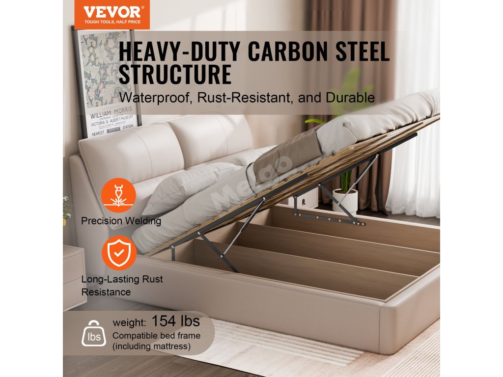 Zvedák úložného lůžka je vyroben z vysoce kvalitní tvrdé oceli, která unese až 132 kg na každou stranu, což zaručuje výjimečnou odolnost bez uvolňování a odírání.
