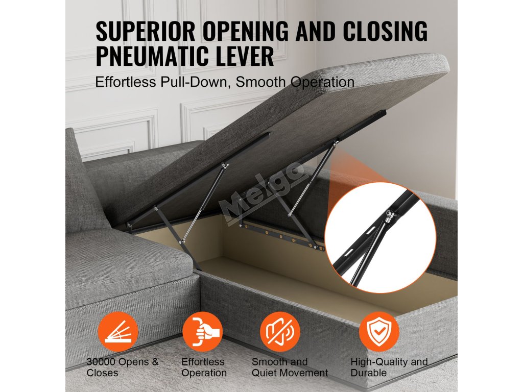 Tento mechanismus zvedání lůžka je vybaven vysoce kvalitními plynovými tyčemi, které prošly náročnými cyklickými testy otevírání a zavírání, což zaručuje dlouhou životnost a odolnost.