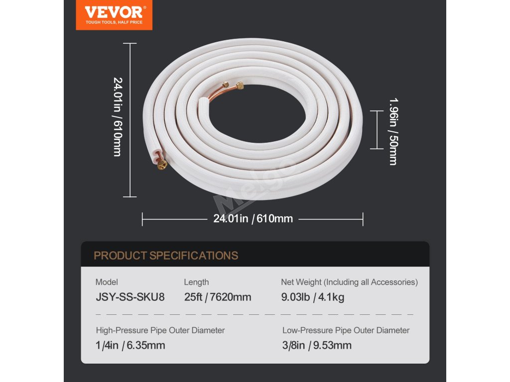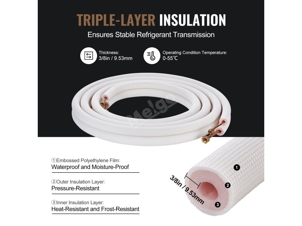 Pro lepší ochranu vnitřních měděných trubek používá VEVOR třívrstvé izolační materiály, které mají lepší izolační vlastnosti než běžné dvouvrstvé izolační materiály. Reliéfní povrchová úprava zvyšuje odolnost a představuje nepopiratelnou pevnost.