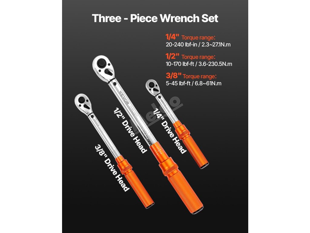 Sada momentových klíčů 3 ks 1/4·3/8·1/2, 5–45/10–170 lbf-ft, ±3%