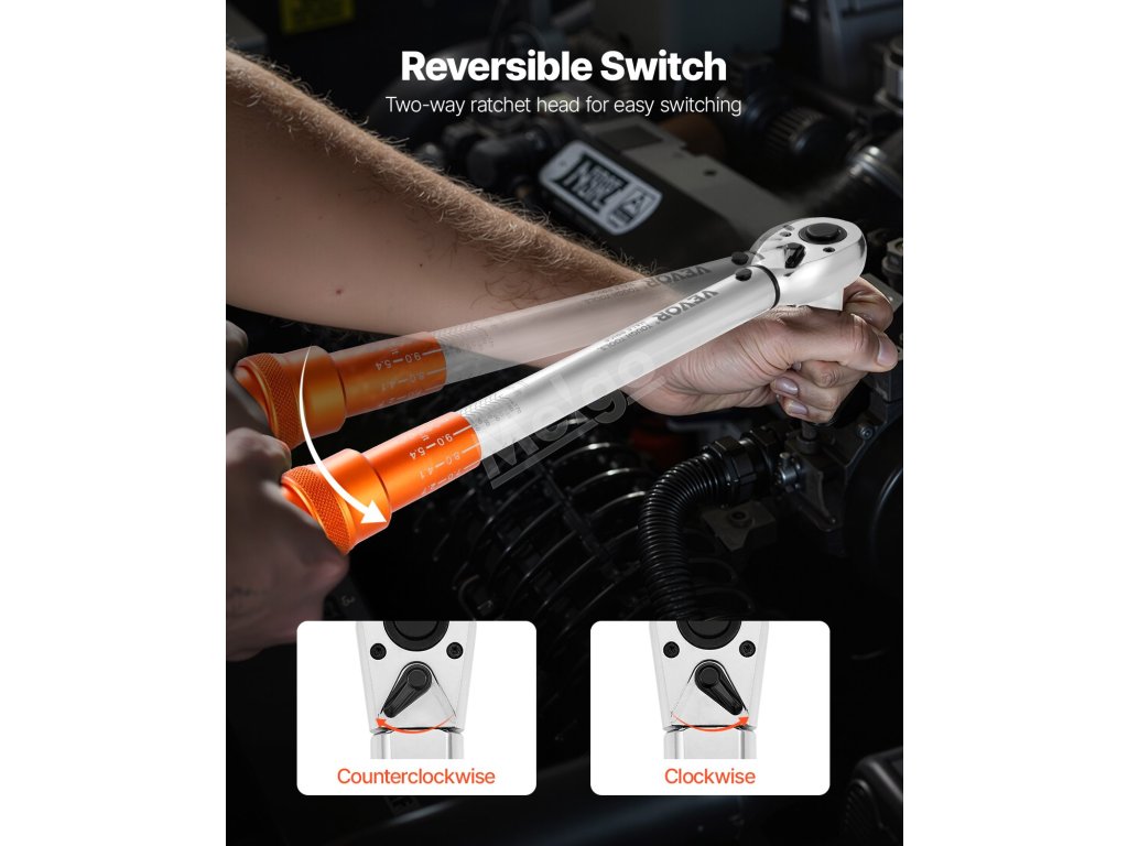 Obousměrný momentový klíč je vybaven laserem gravírovanými stupnicemi pro jasné a přesné odečty i za zhoršených světelných podmínek. Konstrukce se dvěma stupnicemi rozšiřuje univerzálnost klíče, takže je vhodný pro širší škálu úkolů.