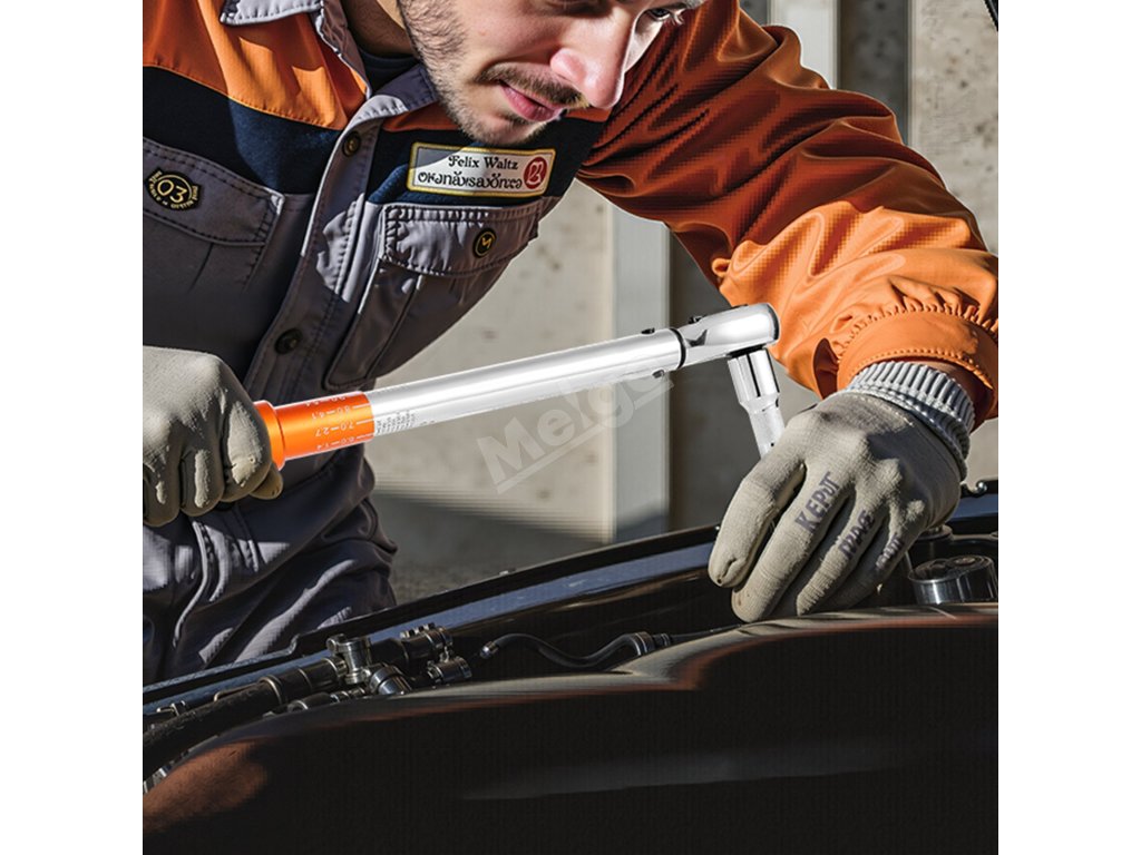 Přednastavená přesnost krouticího momentu ±3 % odpovídá potřebám přesné instrumentace a špičkové automobilové údržby. Ráčna se 72 zuby se při každém cvaknutí otočí o 5°, což usnadňuje práci ve stísněných prostorech nebo při potřebě jemného seřízení.