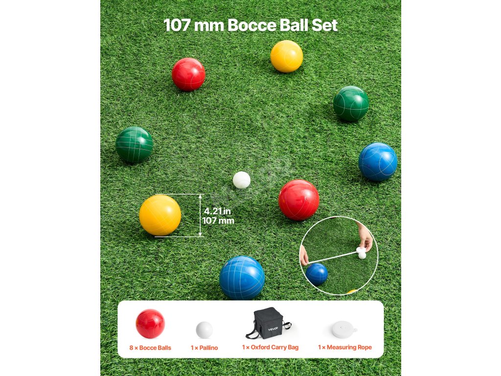 Sada na bocce 8 pryskyřičných míčů 107 mm, pallino, taška, 2–8 hráčů