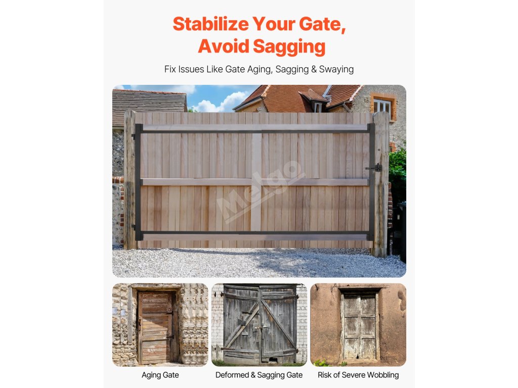 Tato sada kovových vrat zabraňuje jejich prohýbání a stárnutí a hodí se pro 99 % typů vrat na trhu. Je odolná proti korozi a rzi a vydrží silný déšť, sníh i další nepříznivé povětrnostní podmínky, takže je vhodná pro dlouhodobé venkovní použití. Ideální pro brány všech typů a velikostí.