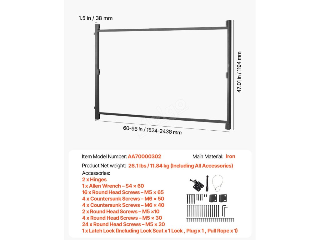 Sada na bránu nastavitelná 60–96 in, 4–5 ft, s panty a šrouby