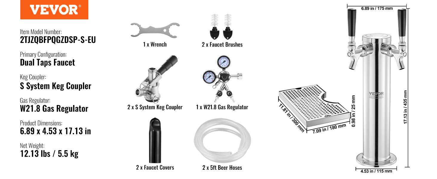 VEVOR Dual Tap Kegerator Tower Kit - vychutnejte si čerstvé pivo kdykoli